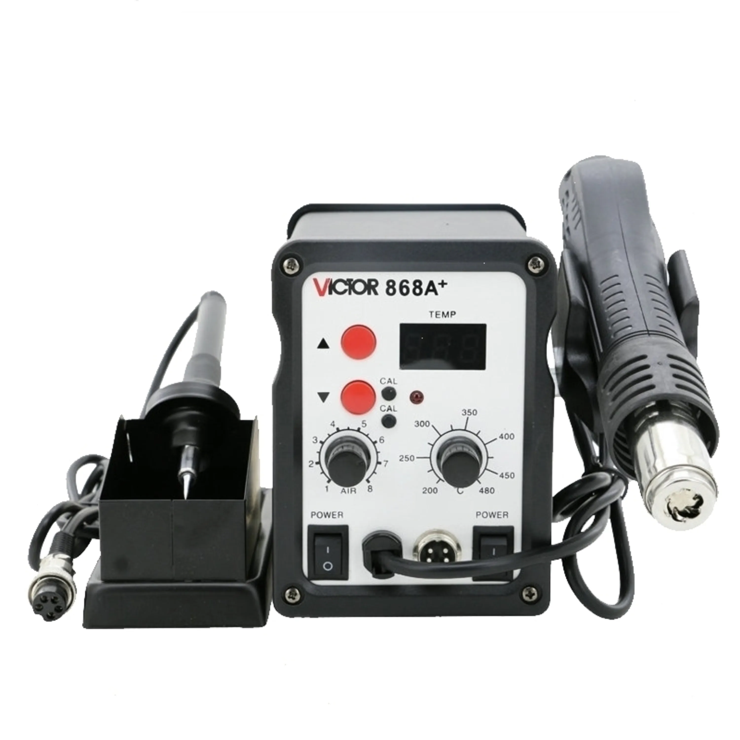 هو یه رومیزی قلمی + هویه هوای گرم 50 وات + 2 عدد نازل + نمایشگر دیجیتال کنترل درجه حرارت + پایه هویه ساخت کمپانی VICTOR