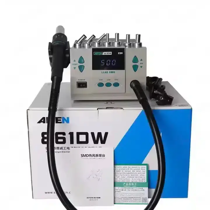 هیتر AIFEN 861DW هیتر جدید شرکت AIFEN با محدوده دمای بین 100 تا 500 درجه سانتیگراد و توان 1000 وات ابزار حرفهای مناسب تعمیرات گوشی موبایل میباشد. هیتر 861DW دارای سیستم خواب خودکار و سرد شدن سریع است که باعث افزایش طول عمر قطعات مصرفی دستگاه و صرفه جویی در مصرف انرژی میباشد. هیتر آیفن 861DW دارای یک صفحه نمایش دیجیتال برای نمایش میزان حرارت دما است. این هیتر دارای 3 کانال ذخیره سازی دما و شدت باد بوده که می توانید دمای مورد نظر خود را روی آنها ذخیره نمایید