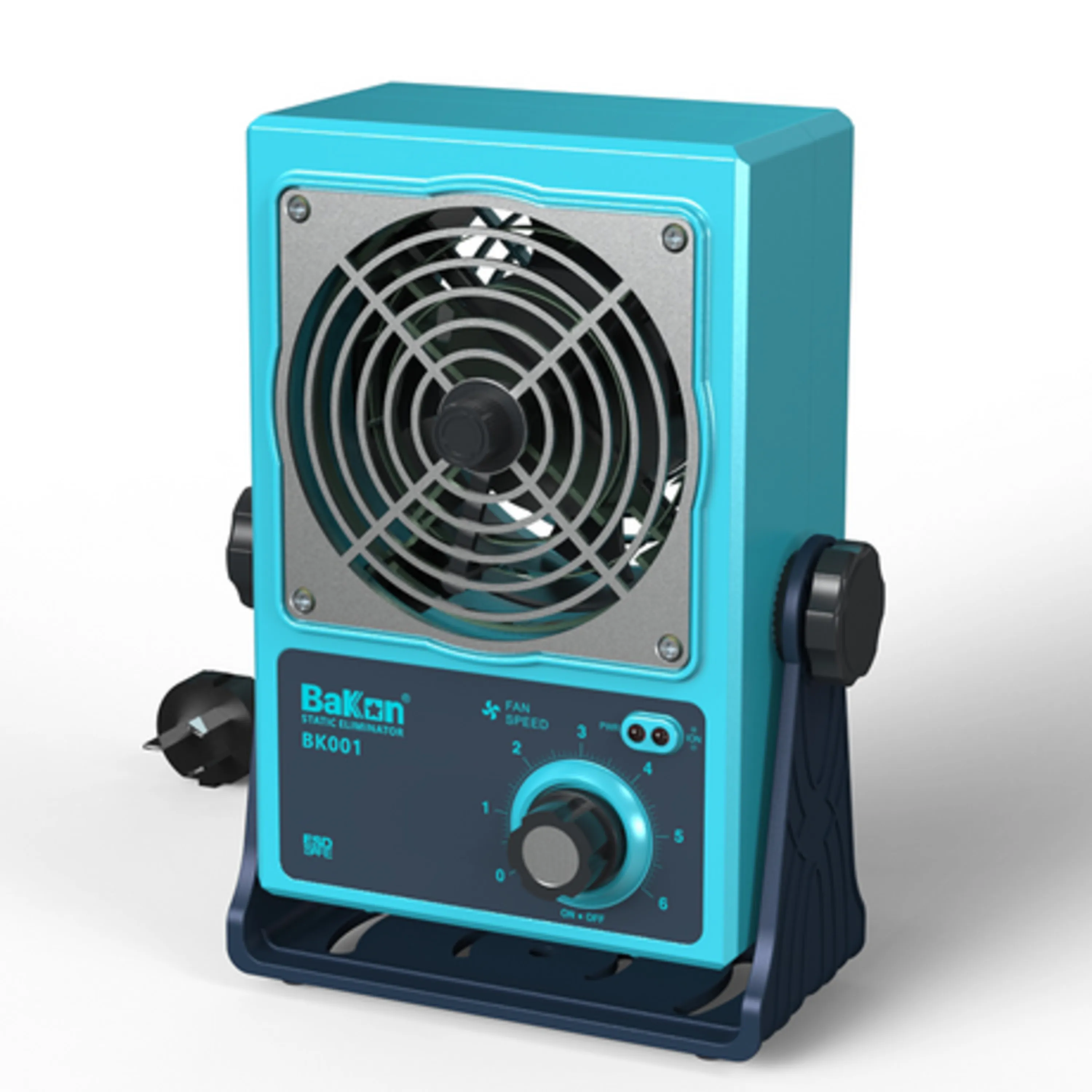 به سرعت بارهای ساکن را خنثی می کند.سرعت فن قابل تنظیم که قادر به تولید جریان یونی با مساحت بزرگ است.